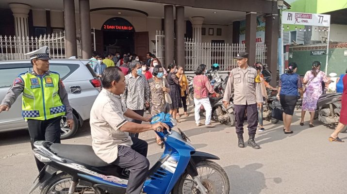 Anggota Polsek Arjawinangun Polresta Cirebon hadir guna beri rasa aman kepada umat Nasrani dalam rangka Kebaktian di GBI (Gereja Bethel Indonesia) Arjawinangun
