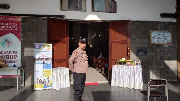 KAB. CIREBON – pengamanan kegiatan Umat Kristiani di Gereja Satho Thomas desa Jatiseeng kecamatan Ciledug, Kabupaten Cirebon yang diikuti Oleh sekitar 100 Jemaat dipimpin Pendeta Romo Cristhian Yudisium Saputra, Minggu (26/11/2023).