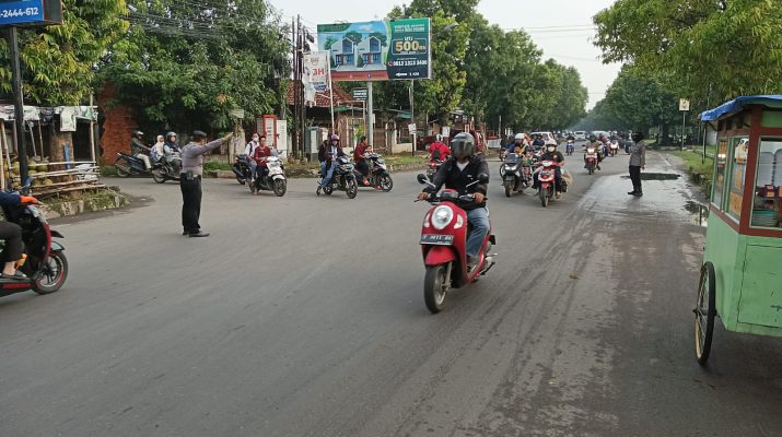 Anggota Polsek Sumber Polresta Cirebon giatkan Police Hazard (PH)pagi untuk beri rasa aman dan lancar baik kepada pelajar maupun masyarakat