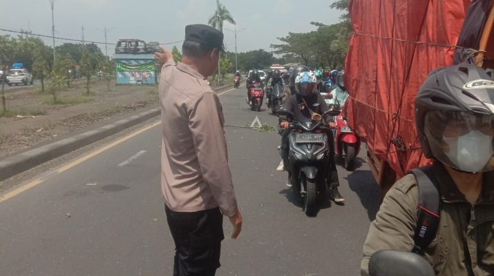 Personil pos pam Bunder melaksanakan Gatur Lalu lintas pagi di desa Bunder Kab. Cirebon demi kelancaran dan antisipasi kemacetan arus dan menghindari terjadinya laka lantas.