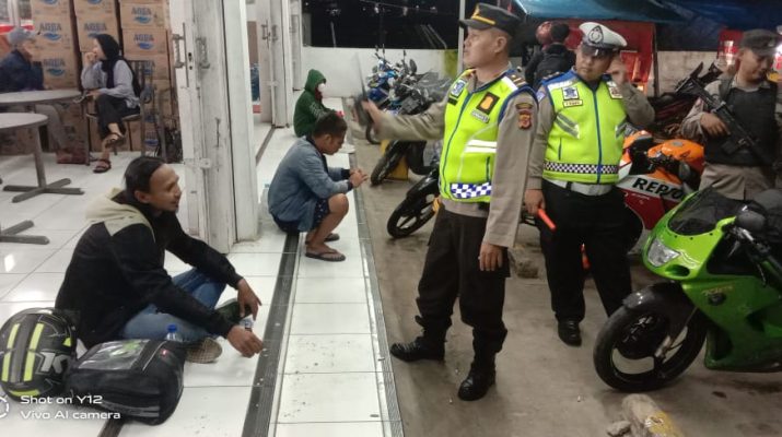 Anggota Pos Pam Jungjang Dialogis bersama pemudik berikan himbauan agar selalu berhati hati di jalan.