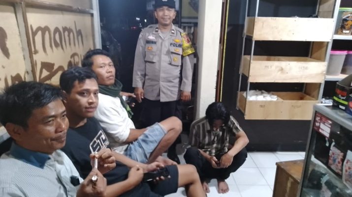 Personil Polsek Sedong Polresta Cirebon Aipda Sutejo Bhabinkamtibmas Desa Putat bersama Aipda Suherman Bhabinkamtibmas Desa Sedonglor melaksanakan Patroli Malam Antisipasi Sahur On The Road dan Perang Sarung di wilkum Polsek Sedong. (01/04/2023).