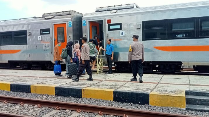 PABUARAN KAB. CIREBON – Dalam rangka mengantisipasi lonjakan penumpang arus balik lebaran hari Raya Idul Fitri 1445 H / 2024 M, di Stasiun Kereta Api Ciledug Daops 3 Cirebon. Anggota Polsek Pabuaran Polresta Cirebon dilibatkan dalam upaya menjaga keamanan dan kenyamanan para penumpang, Kapolresta Cirebon Kombes Pol. Sumarni, SIK. SH. MH. memerintahkan Kapolsek Pabuaran AKP Much. Soleh, SH. untuk menugaskan kepada anggotanya melaksanakan pengamanan angkutan khusus arus Mudik dan arus Balik Lebaran hari Raya Idul Fitri 1445 H / 2024 M. Rabu- (18/04/24)