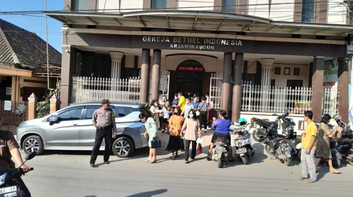 CIREBON –  Berlangsungnya  kegiatan kebaktian di gereja GBI ( Gereja Bethel Indonesia) Arjawinangun pada pagi hari di mana lokasi gereja tersebut terletak di jalan kantor Pos Arjawinangun, guna menciptakan Kamtibmas aman pada saat berlangsung kegiatan tersebut Polsek Arjawinangun melaksanakan pengamanan guna memberikan rasa aman kepada umat Nasrani yang sedang melaksanakan ibadah kebaktian malam di gereja GBI tersebut.