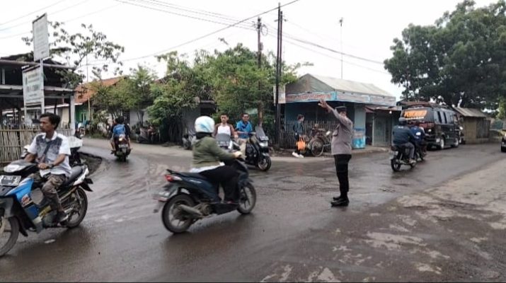 Laksanakan giat PH Pagi pengaturan lalulintas di pagi hari guna keamanan, ketertiban dan kelancaran di jalan raya Babakan-gebang desa babakan kecamatan Babakan Kabupaten Cirebon