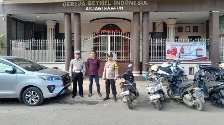 CIREBON – Polsek Arjawinangun Polresta Cirebon hadir amankan kegiatan kebaktian ibadah Raya 1 yang bertempat di gereja GBI Arjawinangun, dalam kegiatan pengamanan tersebut guna memberikan rasa aman kepada umat Nasrani yang sedang melaksanakan kebaktian ibadah Raya 1.