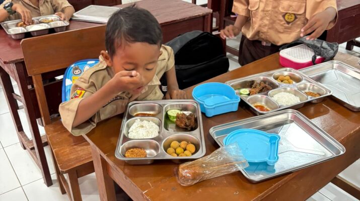 Bhabinkamtibmas Desa Gempol Bripka Suhono Andri bersama Babinsa Serma I Gede Astika lakukan monitoring penyaluran Makan Bergizi Gratis (MBG) Desa Gempol untuk anak Sekolah tingkat Paud , RA, SDN , SMP dan SMA/MA wilayah Hukum Polsek Gempol – Polresta Cirebon.