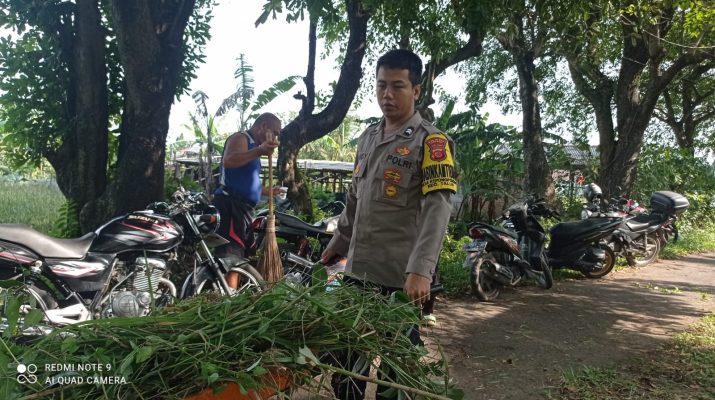 Peduli warga binaannya,pak bhabinkamtibmas Ds. Kepongpongan Polsek Talun Polresta Cirebon Kerja Bakti Di Makan Tengger Rw 01 Ds. Kepongpongan Kec. Talun Kab. Cirebon