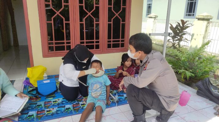 Babakan – Rabu (05/04/2023) Sinergitas Bhabinkamtibmas desa Pakusamben Bripka Roby Firmansyah Polsek Babakan Polresta Cirebon Polda Jabar dengan bersama Ibu PKK desa pakusanmben dan Nakes Puskesmas Babakan ,Bidan Desa pakusamben laksanakan Giat Pin Polio di desa binaan dalam upaya peningkatan kesehatan anak-anak Balita.