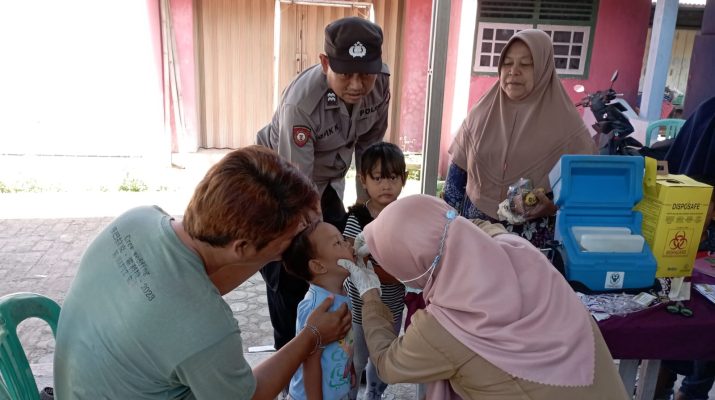 Bhabinkamtibmas Polsek Babakan Polresta Cirebon Dampingi giat PIN ke-2 ( tetes polio ke-2 ) di desa binaan