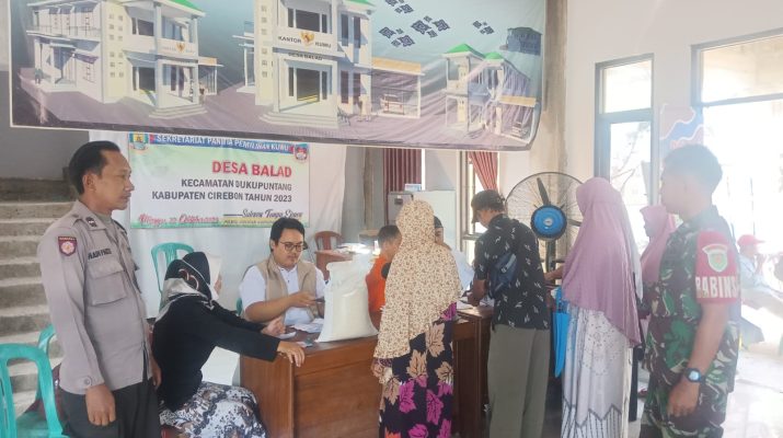 Dukupuntang – Bertempat di Kantor Desa Balad Kecamatan Dukupuntang Kabupaten Cirebon, Bhabinkamtibmas Desa Balad Polsek Dukupuntang Polresta Cirebon Aipda Hadi Fauzi bersama Babinsa Desa Balad Serda Sugiono, melaksanakan pengamanan pendistribusian Bantuan Sosial Pangan Tahun 2023, Kamis (21/09/2023).
