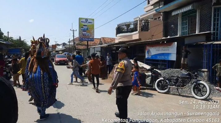 Dalam upaya dekat dengan warga masyarakat di desa binaan yang dilakukan oleh Anggota Bhabinkamtibmas Desa Panguragan lor Bripka Ichsan Robiansyah Polsek Panguragan Polresta Cirebon selalu hadir di tengah-tengah masyarakat dalam pelaksanaan giat pengamanan dan pengaturan hiburan arak-arakan kuda Depok tersebut di desa Panguragan lor kec. Panguragan dan sekaligus menyampaikan himbauan kamtibmas untuk berperan aktif dgn memberikan informasi dan bersama-sama untuk menjaga situasi Kamtibmas Desa Panguragan lor Kec. Panguragan.