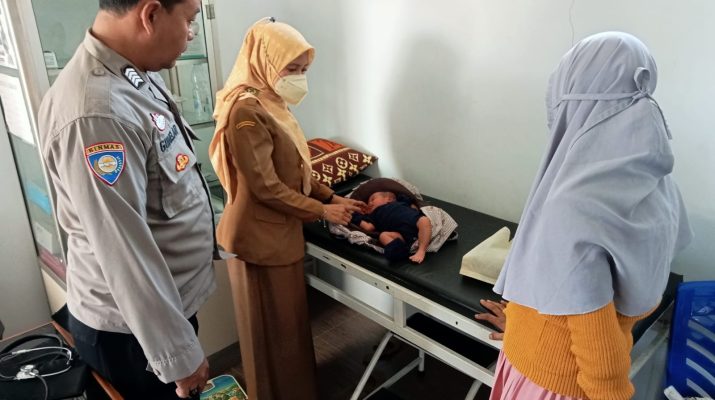 Weru – Bhabinkamtibmas Desa Karangsari Polsek Weru Bripka Gugum melaksanakan giat pendampingan posyandu yang dilaksanakan oleh Bidan Desa Dan Kader Posyandu untuk pemberian Imunisasi kepada balita yang sedang melaksanakan giat posyandu yang bertempat di Puskesmas Karangsari, Senin (10/7)