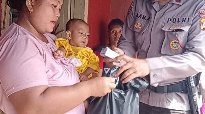 Polri Peduli Stunting, Kapolsek Dukupuntang Polresta Cirebon Berikan Bantuan Paket Sembako Kepada Anak Stunting