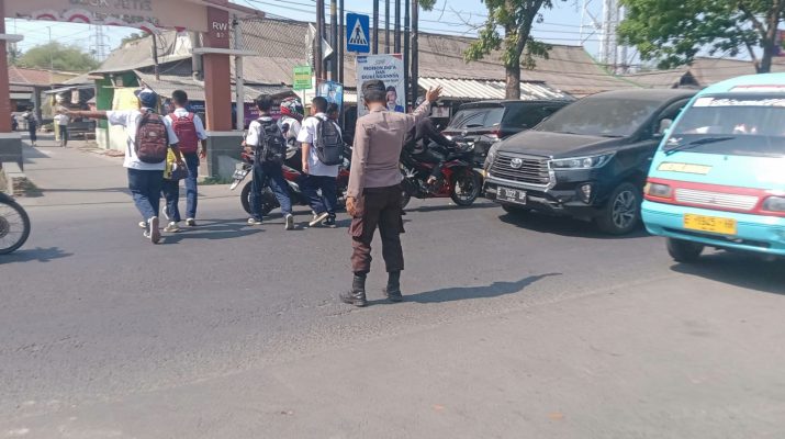 Cirebon – Depan SDN 2 Kepongpongan Kec. Talun Pengaturan lalu lintas di pagi hari merupakan kewajiban setiap anggota Polri yang dimana merupakan pelayanan kepada