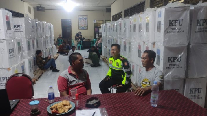Cirebon – Polsek Karangsembung, Polresta Cirebon melaksanakan pengecekan Gudang Logistik Pemilu Tahun 2024 di Kecamatan Karangwareng Kabupaten Cirebon. Jumat malam, (16/02/2024) Kegiatan dilaksanakan oleh