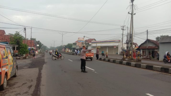 Untuk mengurangi kemacetan di pagi hari Patroli Polsek Susukan Polresta Cirebon lakukan gatur di perempatan Bunder