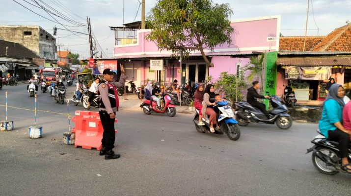 Pelayanan pagi hari Polsek Sumber Polresta Cirebon dimulai dengan pengaturan lalu lintas pagi hari