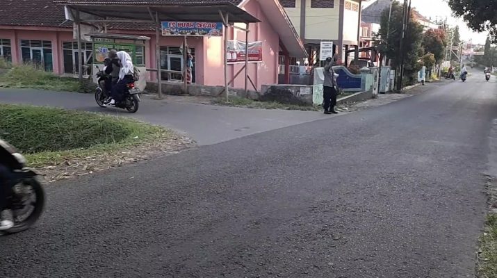 Sedong – Personil Polsek Sedong Polresta Cirebon Aiptu Yaya Wardaya bersama Aiptu Agus Sudrajat dan Bripka Sutardi melaksanakan Pengaturan lalulintas diPerempatan jalan Pasar Sedong