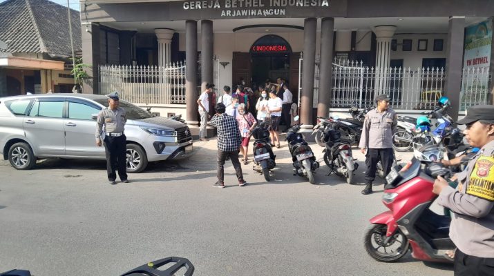 Arjawinangun, Berlangsungnya kegiatan ibadah Kebaktian di Gereja GBI Arjawinangun aman kondusip, anggota Polsek Arjawinangun melaksanakan pengamanan kebaktian guna memberikan rasa aman dan nyaman kepada