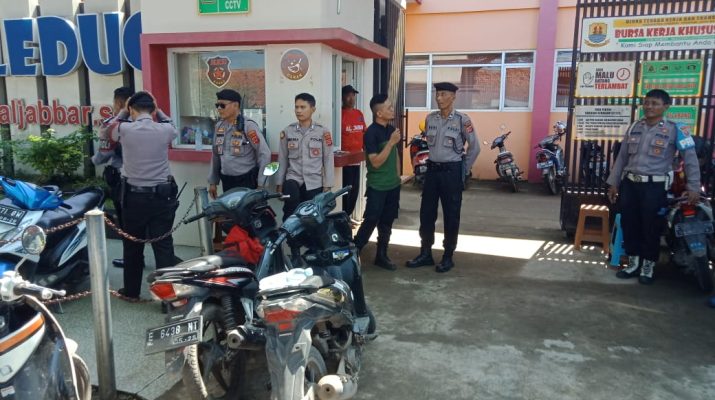 Personel Polsek Plered Polresta Cirebon Monitoring dan Pengamanan Pengumuman Kelulusan Siswa -siswi di SMK Nusantara Weru di Desa Panembahan Kecamatan Plered Kabupaten Cirebon.