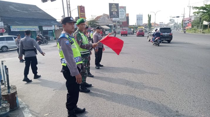 Cirebon – Di wilayah pantauan Pospam Ciperna Polresta Cirebon, anggota Pospam melaksanakan Gatur Lalin pasca Lebaran. (23/04/2023) Pengaturan yang dilakukan oleh anggota yang