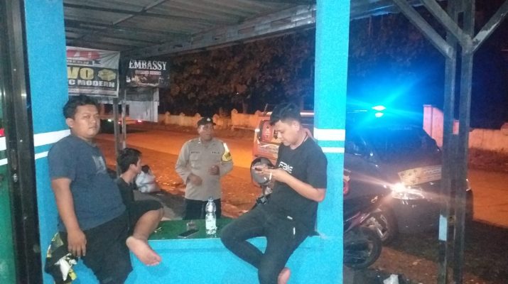Patroli polsek Astanajapura Polresta Cirebon himbau pemuda untuk tidak nongkrong sampai larut malam