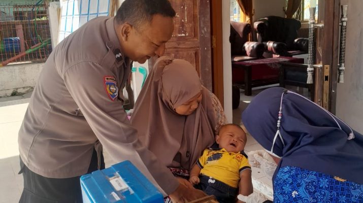 Weru – Polsek Weru Polresta Cirebon ikut andil dalam kegiatan Pekan Imunisasi Nasional (PIN) Polio Ke 2 yang dilaksanakan di Posyandu Ds. Megu Gede