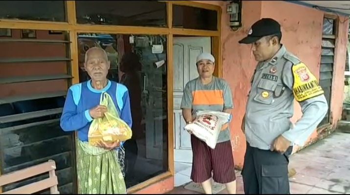 Di hari raya Idul Fitri Bhabinkamtibmas Polsek Arjawinangun Polresta Cirebon Desa Jungjang wetan berikan sembako kepada Purnawiran Polri di Desa Binaannya.