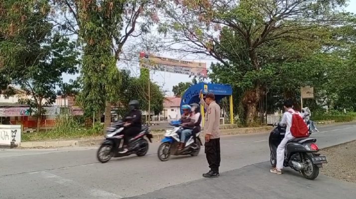 Berikan rasa aman dan nyaman kepada penyeberang jalan Polsek Susukan Polresta Cirebon lakukan pengaturan di perempatan Bunder Polresta Cirebon – Utk memberikan rasa aman