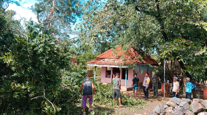 Kapolsek Depok Polresta Cirebon dan anggota cek rumah warga yang terkena puting beliung