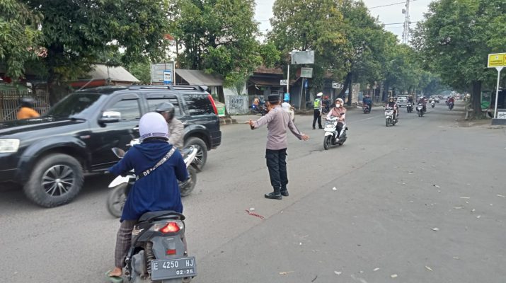Berikan pelayanan kepada masyarakat,Polsek Sumber Polresta Cirebon lakukan pengaturan lantas pagi hari.