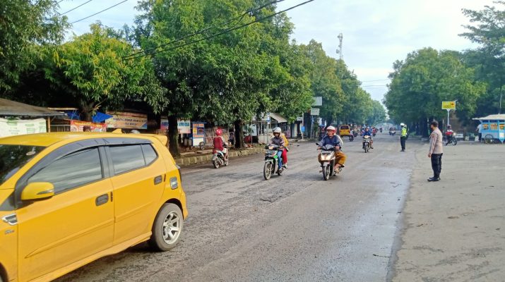Anggota Polsek Pangenan Polresta Cirebon PH pagi di pertigaan Desa Ender Kecamatan Pangenan