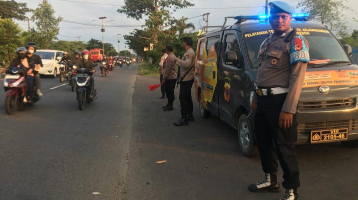 Menciptakan Arus Balik aman dan lancar Anggota Pos Pam Jungjang Polresta Cirebon meningkatkan giat patroli antisipasi C3 di jalur By Kebonturi.