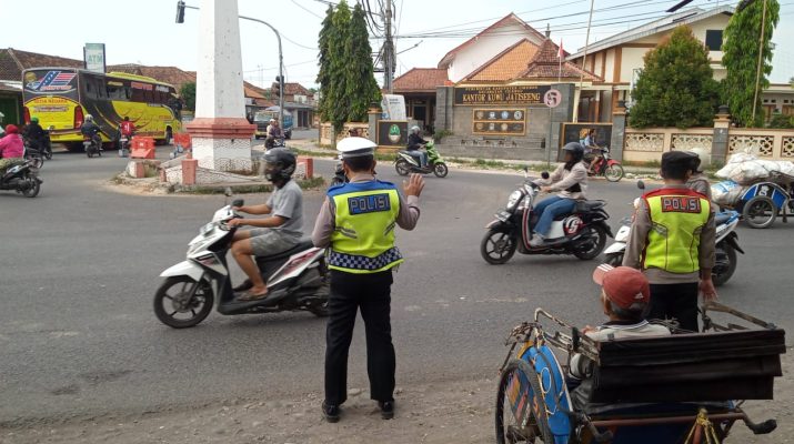 Demi menciptakan lalu lintas yang kondusif, Polsek Pabuaran – Polresta Cirebon laksanakan gatur pagi