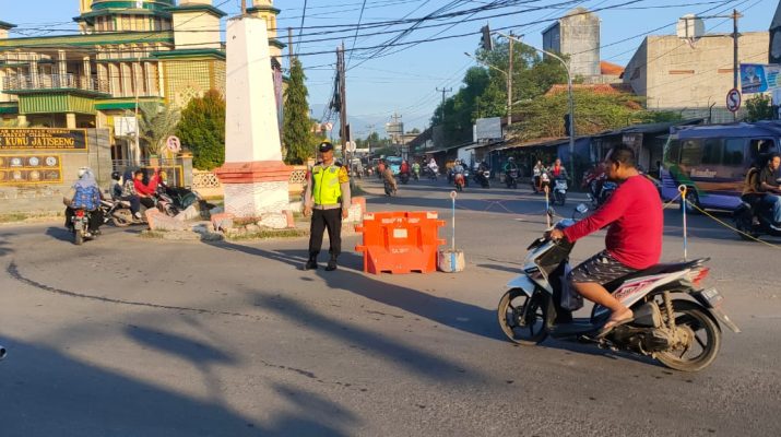 KAB.CIREBON – Pabuaran rutinitas pada pagi hari yang dilakukan oleh anggota Polsek Pabuaran dan anggota sat lantas Polresta Cirebon diantaranya ialah melakukan pengaturan lalu lintas guna memberikan pelayanan kepada anak sekolah dan. masyarakat agar merasa aman dan nyaman baik dalam berkendara maupun pada saat menyebrang jalan, selain itu juga untuk meminimalisir terjadinya kemacetan dan kecelakaan lalu-lintas hususnya di perempatan Pamer Jatiseeng, kecamatan Ciledug kabupaten Cirebon,Selasa (23/05/2023).
