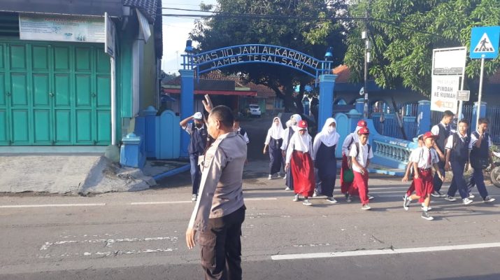 Jajaran Personil Polsek Plered Polresta Cirebon melaksanakan Gatur Lalu lintas pagi di Jaln raya Plered Jln. Otista tepatnya depan SDN3 Tegalsari dan SMPN2 Plered Ds. Tegalsari Kec Plered Kab Cirebon