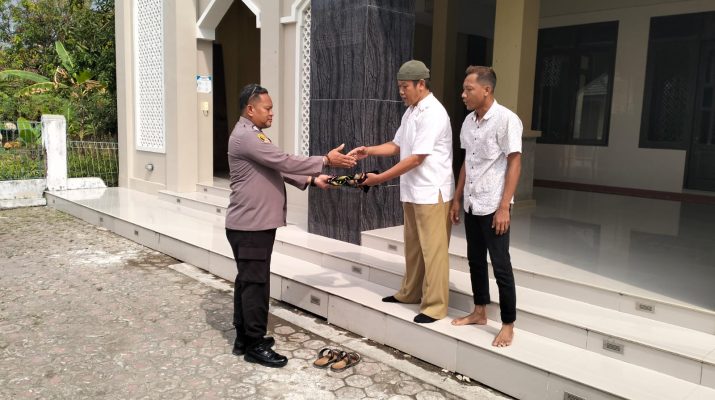 karangsembung, Bhabinkamtibmas Desa Sumurkondang BRIPKA Aris.S dan Tokoh agama UST iksan melaksanakan kegiatan tali asih pemberian alat sholat kepada ketua Dkm Desa sumurkondang kecamatan karangwareng kab.cirebon hari Rabu 07 Juni 2023 di masjid Baitulrohman desa sumurkondang.