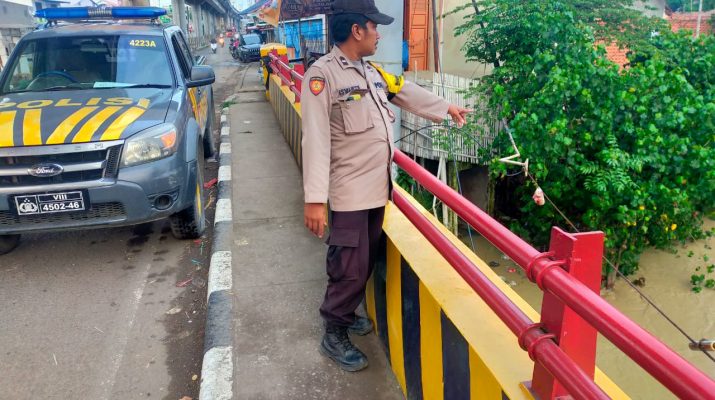 Intensitas Hujan cukup tinggi di bulan Maret unit patroli Polsek Gebang lakukan pengecekan debit air sungai Ciberes