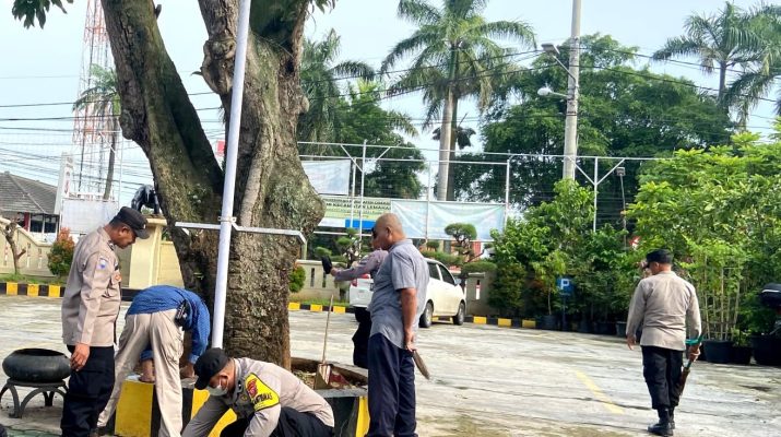 Jaga kebersihan Mako Polsek Lemahabang Polresta Cirebon