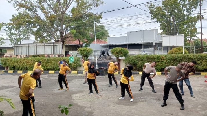CIREBON – Personil Polsek Talun melaksanakan kegiatan olahraga bersama di halaman Mako Polsek Talun. (08/09/2023)