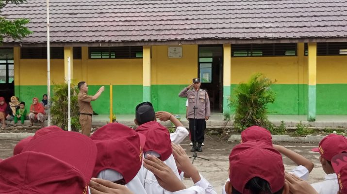 Kanit Binmas Menjadi Pembina Upacara Di SDN 3 Tegalsari Plered Mensosialisasikan Tentang Buliying dan Tawuran Plelajar.