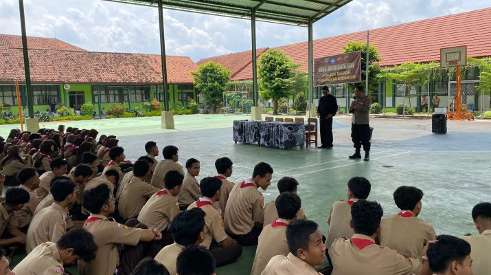 Kanit Binmas Polsek Depok Polresta Cirebon Aiptu Iwan Suryawan didampingi Briptu Sri Rohani, S.H memberikan pembinaan dan pesan-pesan kamtibmas kepada sejumlah anggota Pramuka Saka Bhayangkara Polsek Depok Polresta Cirebon di SMAN I Plumbon, Senin (16/02/2023).