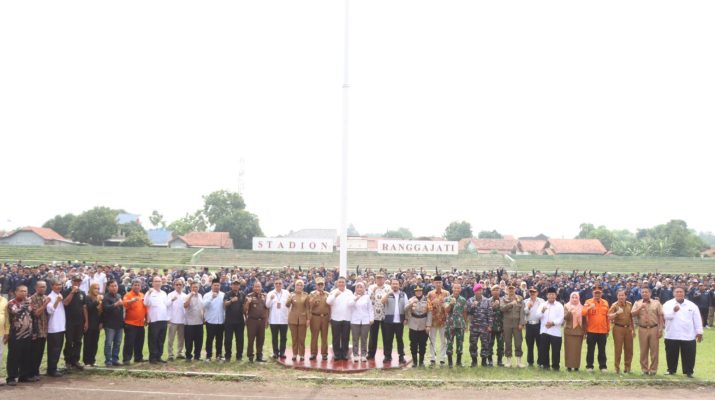 Kapolresta Cirebon, Kombes Pol Sumarni, S.I.K, S.H, M.H, menghadiri Apel Kesiapan dan Do’a Bersama Pelaksanaan Pemungutan dan Penghitungan Suara Pemilu 2024 di Stadion Ranggajati, Kecamatan Sumber, Kabupaten Cirebon, Senin (12/2/2024). Kegiatan tersebut dihadiri Forkopimda hingga penyelenggara dan pengawas Pemilu 2024 tingkat Kabupaten Cirebon.