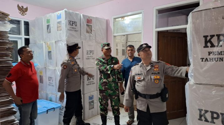 Kapolsek Kontrol Gudang Logistik Pasca Pencoblosan Pemilu 2024 di PPK Kecamatan Sedong