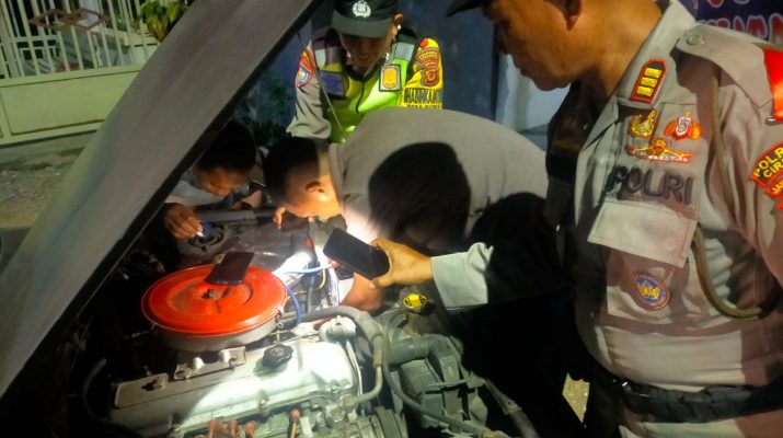 Kapolsek Susukan Polresta Cirebon Cepat Tanggap bantu Mobil Pemudik yang sedang mogok