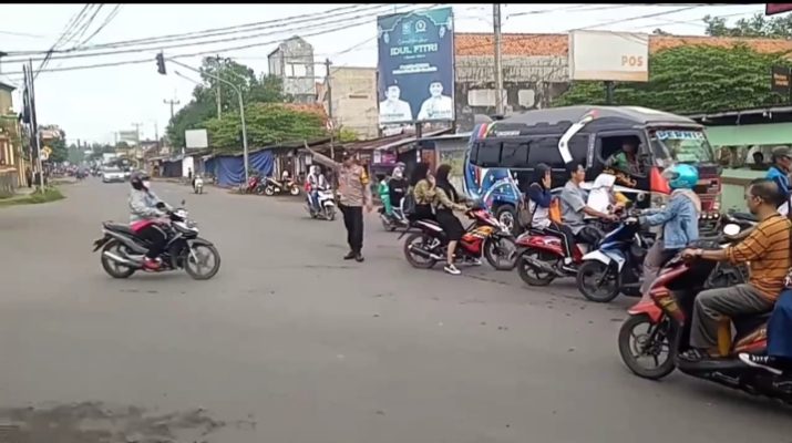 Kegiatan Rutinitas yang dilakukan Personil Polsek Pabuaran untuk mengatasi rawan macet adakan gatur pagi diperempatan bunderan jatiseeng, kc ciledug, kab Cirebon.