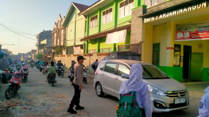 Arjawinangun, Kehadiran anggota Polsek Arjawinangun di Pagi hari untuk memberi rasa aman dan lancar oleh karena itu anggota Polsek Arjawinangun Polresta Cirebon melaksanakan kegiatan pengaturan di pagi hari, adapun kegiatan gatur Lalin tersebut di laksanakan oleh Panit 2 Binmas Aiptu Arif Munandar di sekitara jalan depan SMPN 1 Arjawinangun, termasuk Desa Arjawinangun dan kegiatan tersebut di laksanakan guna mengantisipasi adanya kemacetan di pagi hari, karena banyaknya hilir mudik kendaraan maupun pejalan kaki yang melintas jalan tersebut, oleh karena itu untuk mengantisifasinya Aiptu Arif Munandar melaksanakan pengaturan lalu lintas di pagi hari, adapun maksud dan tujuan di laksanakan kegiatan tersebut guna menciptakan rasa aman dan lancar kepada masyarakat terutama pengendara R2, R4 maupun pejalan kaki yang hendak melakukan aktivitas di pagi hari, seperti para pelajar yang hendak berangkat ke sekolah merasa aman karena kehadiran anggota Polsek Arjawinangun yang selalu membantu untuk menyebrangkan begitupun juga dengan masyarakat yang membutuhkan pelayanan Polisi di pagi hari.