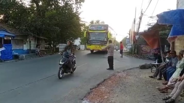 Polresta Cirebon – Personel Polsek Karangsembung melaksanakan pengaturan lalu lintas di jalan raya membantu kelancaran masyarakat pengguna jalan yang beraktivitas pagi pasca lebaran.