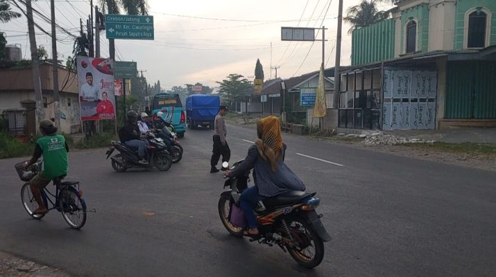 Personil Piket Polsek Ciwaringin Polresta Cirebon Polda Jabar, melaksanakan Gatur Lalu lintas pagi di Jalan Raya Cirebon – Bandung, tepatnya di pertigaan Rs. Sumber waras Desa Ciwaringin Kec, Ciwaringin Kab Cirebon.